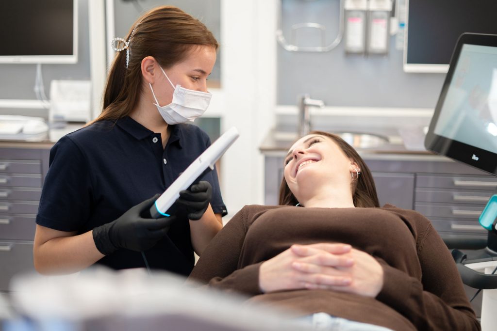 Mit einem modernen Intraoralscanner erfassen wir Ihre Zähne präzise und abdruckfrei. Der 3D-Scan ist für Sie kostenfrei und bildet die Grundlage für die weitere Planung.