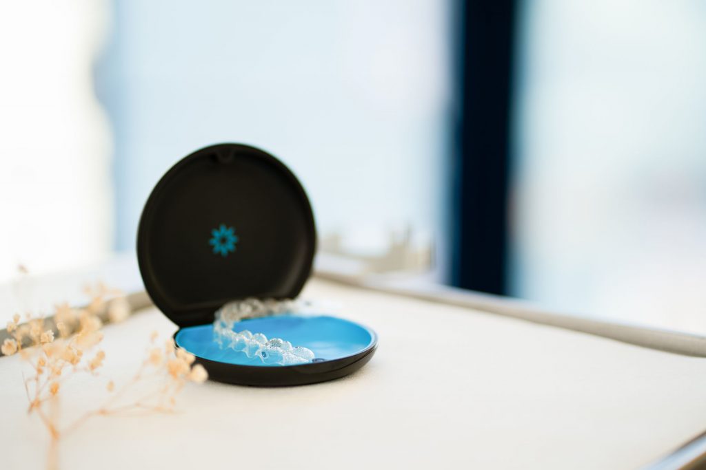 Die Aligner bestehen aus transparentem Kunststoff und sind im Alltag kaum sichtbar.